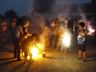 毎年7月に、おやじの会では、元石川小学校校庭にて、親子で楽しむ花火大会を開催しています。