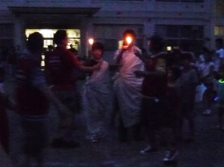 当日は、準備段階で少し雨がぱらついたりもしましたが、本番の時間帯では、雨風はなく無事行うことができました。今年はおやじの会のスタッフも増え、準備も順調に進みました。たくさんのバケツやろうそくを用意しましたが、19時開始の直前まで子どもたちがあまり来なかったらどうしようとも心配しましたが、開始時間にはたくさんの親子が集まってくれました。