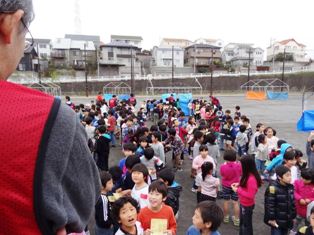 今年はじめての試みとして、子どもたちに人気のTV番組「逃走中」を企画しました。子どもたちが逃走者、おやじの会のメンバーがハンター役です。はじめは、本当にできるのか、けがをしないか、お父さんの体力が持つのか不安でした。でも何度も何度も打ち合わせを重ね、いろいろアイデアを出し合っていくうちに、おやじの会のメンバーも楽しみになり、やる前からもう、来年以降もやっていこうというぐらい盛り上がっていました。そして、10月に参加募集をしたところ、なんと500名もの子どもたちが申し込みをしてくれました!募集締め切り後も、当日直前まで追加の申し込みが毎日のようにきました。それから、おやじの会だけではハンターが足りないので、保護者の皆さんにも参加をお願いしたところ、ハンターとその他スタッフとして、予想をはるかに超える150名もの保護者の皆さんが参加してくださいました。皆さんに支えられ、子どもたちと楽しいひと時を過ごせたことを何よりも感謝いたします。そして、当日、子どもたち楽しそうに走り回っている姿とともに、お父さん、お母さんが楽しそうに参加してくださったことに見ることができ、実現できたことがよかったと感じています。学校、自治会、近隣にお住まいの方々、保護者の皆様のご理解、ご協力をいただきましたことを心よりお礼申し上げます。