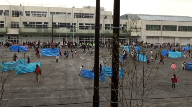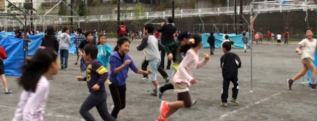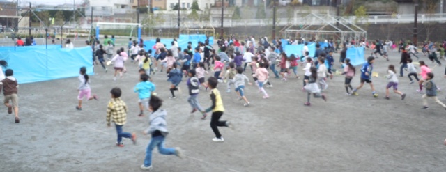 校庭中を走り回る子どもたち。